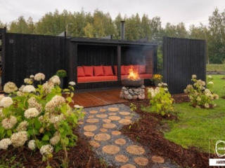 Die Module umfassen Sauna, Badefass, Umkleidekabine, Bank, Lounge, Pergola und Terrassen. Sie können sie in beliebiger Reihenfolge kombinieren oder als völlig separate Elemente verwenden.