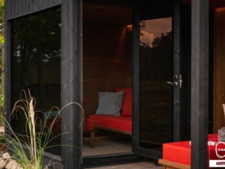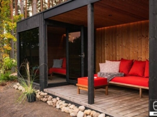 Die Kirami FinVision® -Lounge M Misty ist ein komplettes, eigenes Modul mit fertigen Wänden. Sie fügt sich nahtlos in die anderen Kirami FinVision® Misty Module ein oder kann als eigenständiges Gebäude genutzt werden. Die Lounge kann zum Beispiel als Ruhebereich oder Homeoffice genutzt werden. Die Lounge kann mit einer Kirami FinVision® -Sofagarnitur und einem -Teppich oder anderen Möbeln Ihrer Wahl eingerichtet werden.