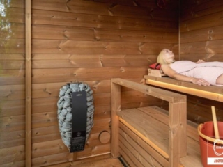 Die Wände und die Decke der Sauna sind isoliert, und das Argongas zwischen den doppelt verglasten Scheiben verstärkt die Isolierung der Fenster. Sie können die Wärme der Sauna bei jedem Wetter genießen. Das fertige, vorinstallierte Blechdach bietet einen guten Schutz für die Sauna.