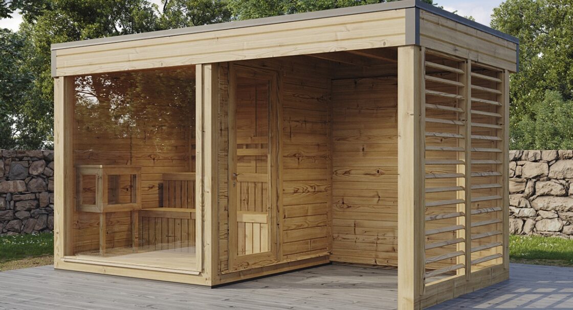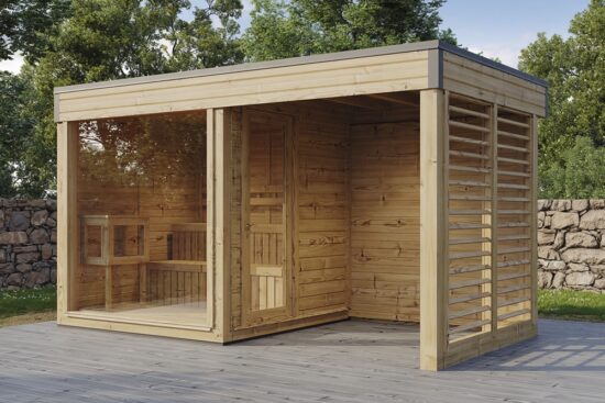 Entdecken Sie Ihr persönliches Wellness-Paradies: 75 mm Saunahaus mit großer Glasfront. Verwandeln Sie Ihren Garten in eine Oase der Entspannung mit unserem hochwertigen 75 mm Saunahaus, das durch seine beeindruckende große Glasfront besticht. Dieses Saunahaus vereint modernes Design mit Funktionalität und bietet Ihnen die perfekte Möglichkeit, die wohltuende Wirkung der Sauna in vollen Zügen zu genießen. Die großzügige Glasfront ermöglicht nicht nur einen atemberaubenden Blick auf die Natur, sondern sorgt auch für ein helles und einladendes Ambiente im Inneren. Stellen Sie sich vor, wie Sie in der warmen, beruhigenden Atmosphäre der Sauna entspannen, während das Licht sanft durch die großen Fenster strömt und eine harmonische Verbindung zur Außenwelt schafft. Das 75 mm dicke Holz sorgt für eine hervorragende Isolierung und hält die Wärme optimal im Inneren, sodass Sie auch an kühleren Tagen die wohltuende Wärme genießen können. Die Kombination aus hochwertigem Material und durchdachtem Design macht dieses Saunahaus zu einem langlebigen Begleiter für viele entspannende Stunden.