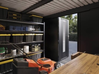Mit hochwertigem Zubehör und der Wahl zwischen Einzel- oder Doppeltüren mit Lichtelementen sowie zusätzlichen Seitenwänden wird das Metall-Gartenhaus mit Seitendach zum flexiblen, stilvollen Hingucker in Ihrem Garten – stabil, zeitlos und ganz nach Ihren Wünschen.